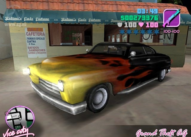 Cuban Hermes: клас - гангстерські ридвани, швидкість складає 160 км/год, прискорення / гальмування - 25, керованість на дорозі становить 40, вага - 2.15 тонни, тип приводу повний, тип палива - бензин. Віртуальна ціна в грі становить $10000, ушкоджуваність - 55%. Я хочу таку машину!!! І не просто Hermes, а той шедевр, який створили кубинці. Прекрасні обтічні форми (прикрути крила - вийде літак часів Другої світової), зухвале розфарбування, вогонь, що виривається з вихлопних труб... А гарчання мотора! І начхати, що швидкісні характеристики Cuban Hermes залишають бажати кращого, автомобіль не засіб пересування, врешті-решт. Це розкіш!